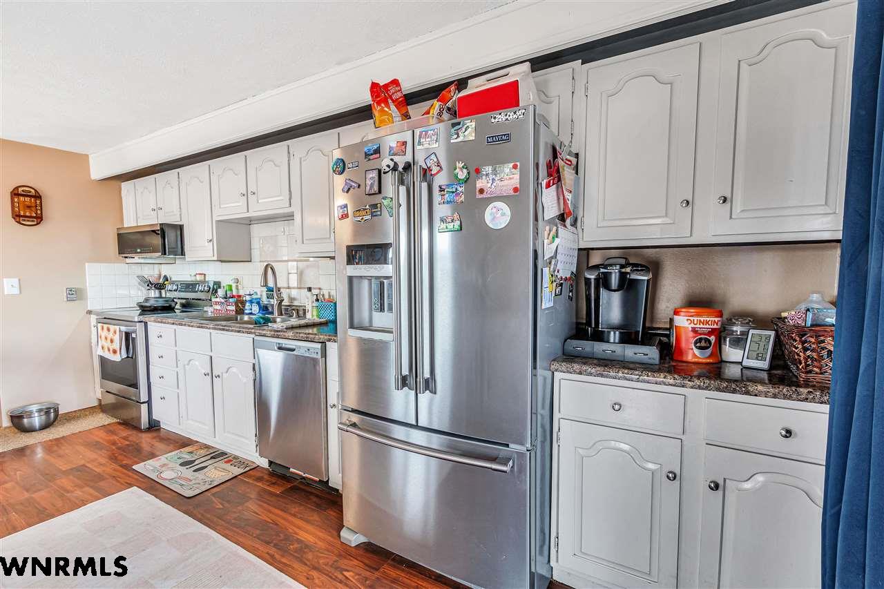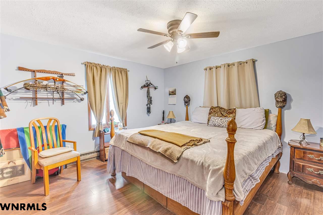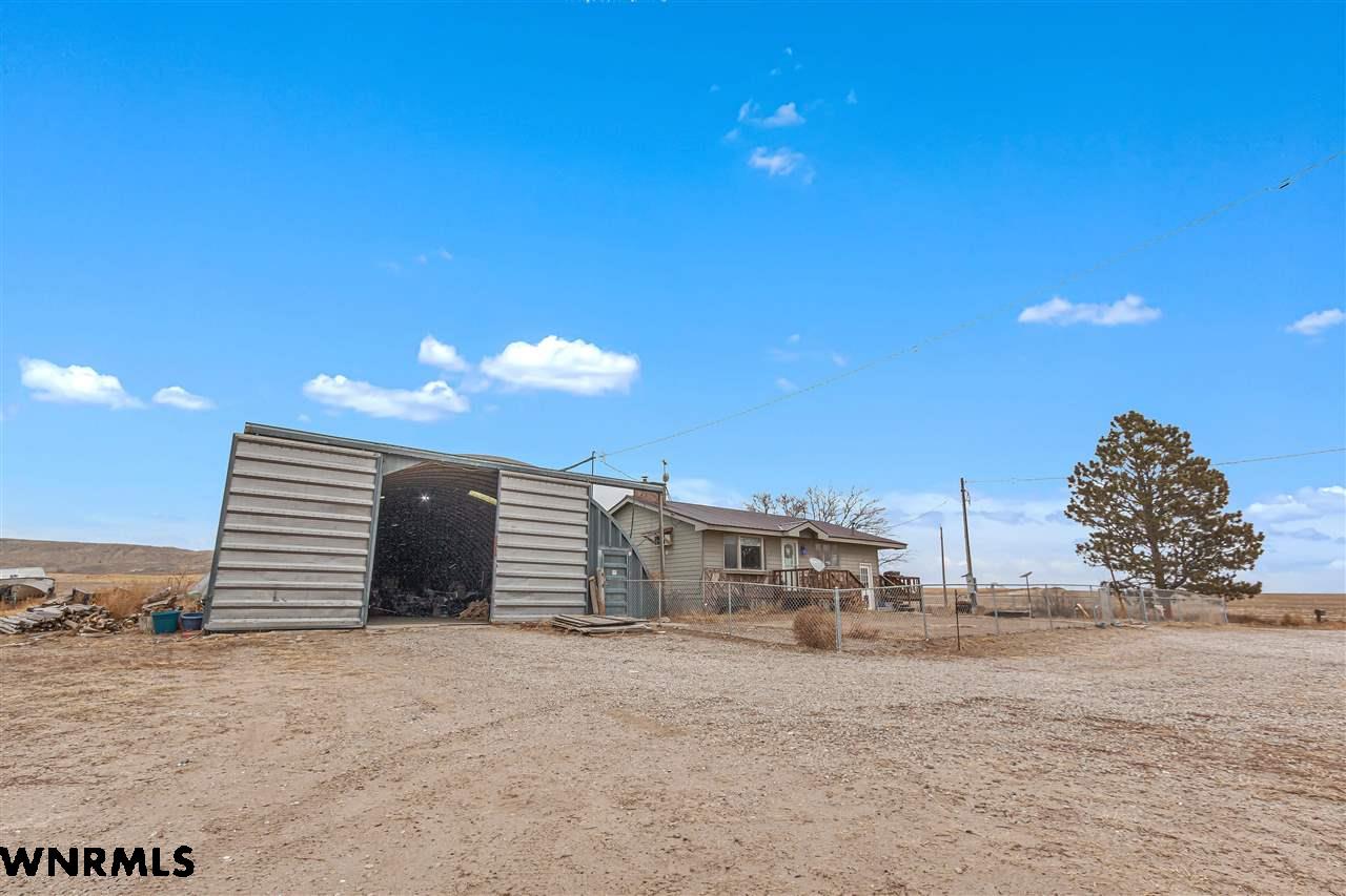 Experience the serenity of this 2.69 Acre property, offering stunning views in every direction. The main floor boasts two cozy bedrooms and a full bath. The bright, airy kitchen, complete with stainless steel appliances-a fridge with filtered ice and water. an Air Fry stove with slow cook option, a built-in microwave, and dishwasher. The kitchen flows seamlessly onto the deck. Bonus; all appliances are a couple of years old. The dining area sits conveniently adjacent to the kitchen, perfect for family meals or entertaining guests. Enjoy the upgrades, including new thermal shades on the windows and a fresh coat of paint throughout the interior. The lower level invites you in with a family room featuring a wood-burning stove, ideal for those chilly nights. You will also find two additional bonus rooms, 3/4bath, and a laundry room equipped with a newer oversized washer, dryer and sleek laminate flooring. Outside, the expansive quonset offers ample storage and parking space for vehicles while the new chain-link fence enclosed a spacious yard perfect for kids and pets alike. The property is even equipped with an electrical hookup for a gas powered generator-ready for any situation. Quonset boasts a new door. Don't miss the chance to call this peaceful haven home-schedule your viewing today