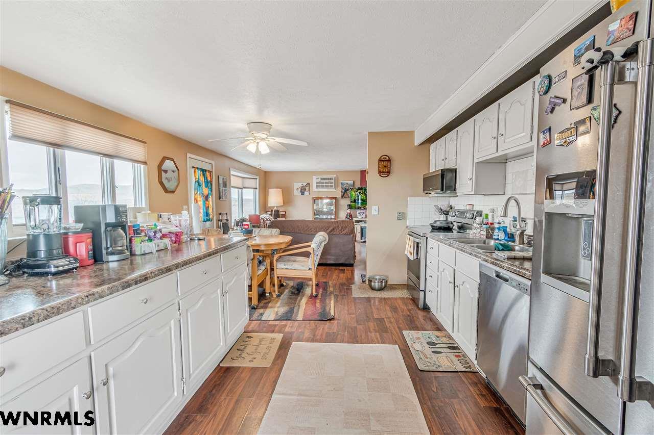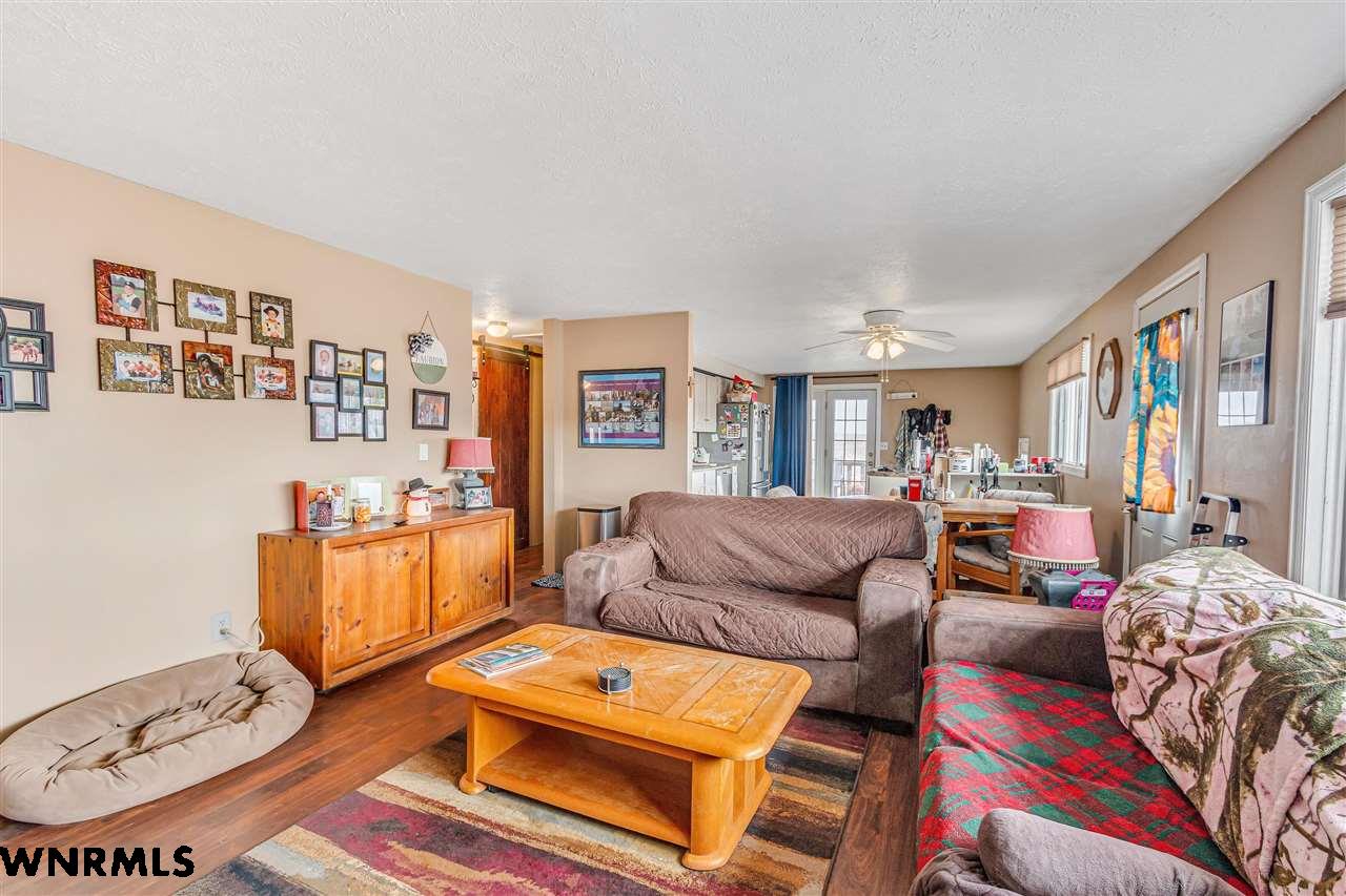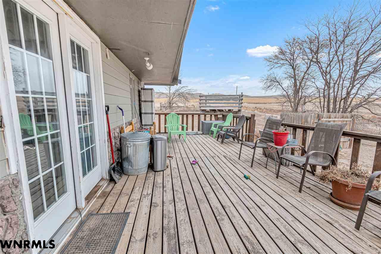 Experience the serenity of this 2.69 Acre property, offering stunning views in every direction. The main floor boasts two cozy bedrooms and a full bath. The bright, airy kitchen, complete with stainless steel appliances-a fridge with filtered ice and water. an Air Fry stove with slow cook option, a built-in microwave, and dishwasher. The kitchen flows seamlessly onto the deck. Bonus; all appliances are a couple of years old. The dining area sits conveniently adjacent to the kitchen, perfect for family meals or entertaining guests. Enjoy the upgrades, including new thermal shades on the windows and a fresh coat of paint throughout the interior. The lower level invites you in with a family room featuring a wood-burning stove, ideal for those chilly nights. You will also find two additional bonus rooms, 3/4bath, and a laundry room equipped with a newer oversized washer, dryer and sleek laminate flooring. Outside, the expansive quonset offers ample storage and parking space for vehicles while the new chain-link fence enclosed a spacious yard perfect for kids and pets alike. The property is even equipped with an electrical hookup for a gas powered generator-ready for any situation. Quonset boasts a new door. Don't miss the chance to call this peaceful haven home-schedule your viewing today