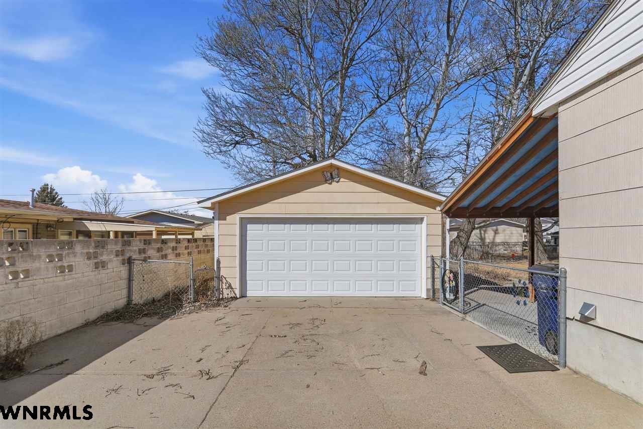 Charming ranch home with original hardwood floors in the living room and bedrooms. The main floor includes 2 bedrooms, a full bath, a spacious kitchen with modern touches, and a large pantry. The basement offers 2 non-conforming rooms with potential for bedrooms, a roomy rec area perfect for various activities, and a laundry room with a half bath. Step out to the backyard and enjoy the covered patio, insulated to stay cool on hot summer days, and shaded by several trees. Additional features include a detached 2-car garage, fenced backyard, and storage shed.