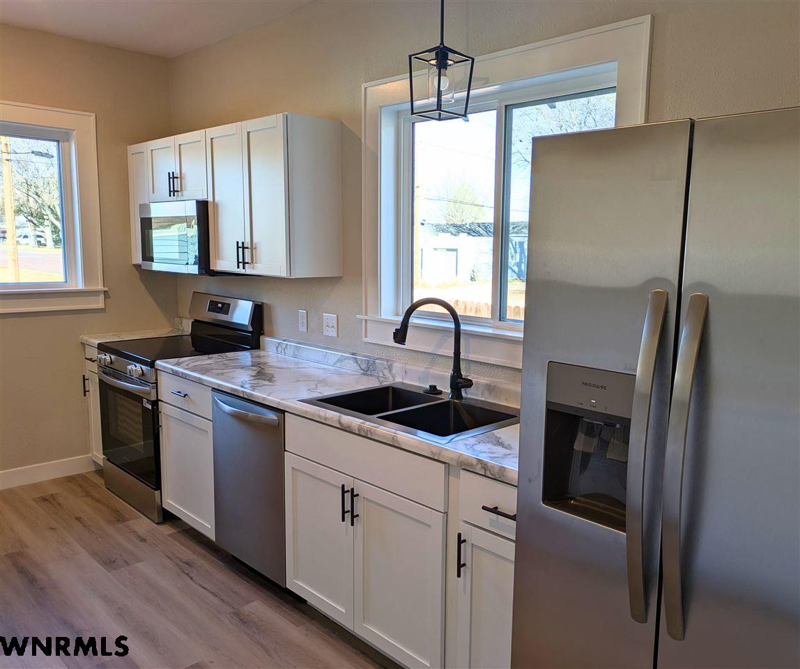 This beautifully renovated property offers a rare opportunity to own two homes on one lot in a prime Gering location directly across from Gardner Park. Whether you are looking for multi-generational living, an owner-occupied investment, or a property with flexible income potential, this one offers exceptional versatility. The main residence has been thoughtfully updated with modern finishes while still feeling warm, inviting, and move-in ready. Spacious living areas and updated features create a comfortable place to call home. One of the standout features is the large finished basement, which offers valuable bonus space for a second living area, guest space, recreation room, home office, or future customization to fit your needs. The second home adds even more value and flexibility, whether used for rental income, extended family, guests, or a private workspace. With its unique layout and multiple living options, this property is well suited for buyers who want both comfort and long-term potential. In addition to the updates and flexibility, the location is a major advantage. Situated near downtown Gering, grocery store, parks, and everyday conveniences, this property combines lifestyle, function, and investment appeal in one compelling package.