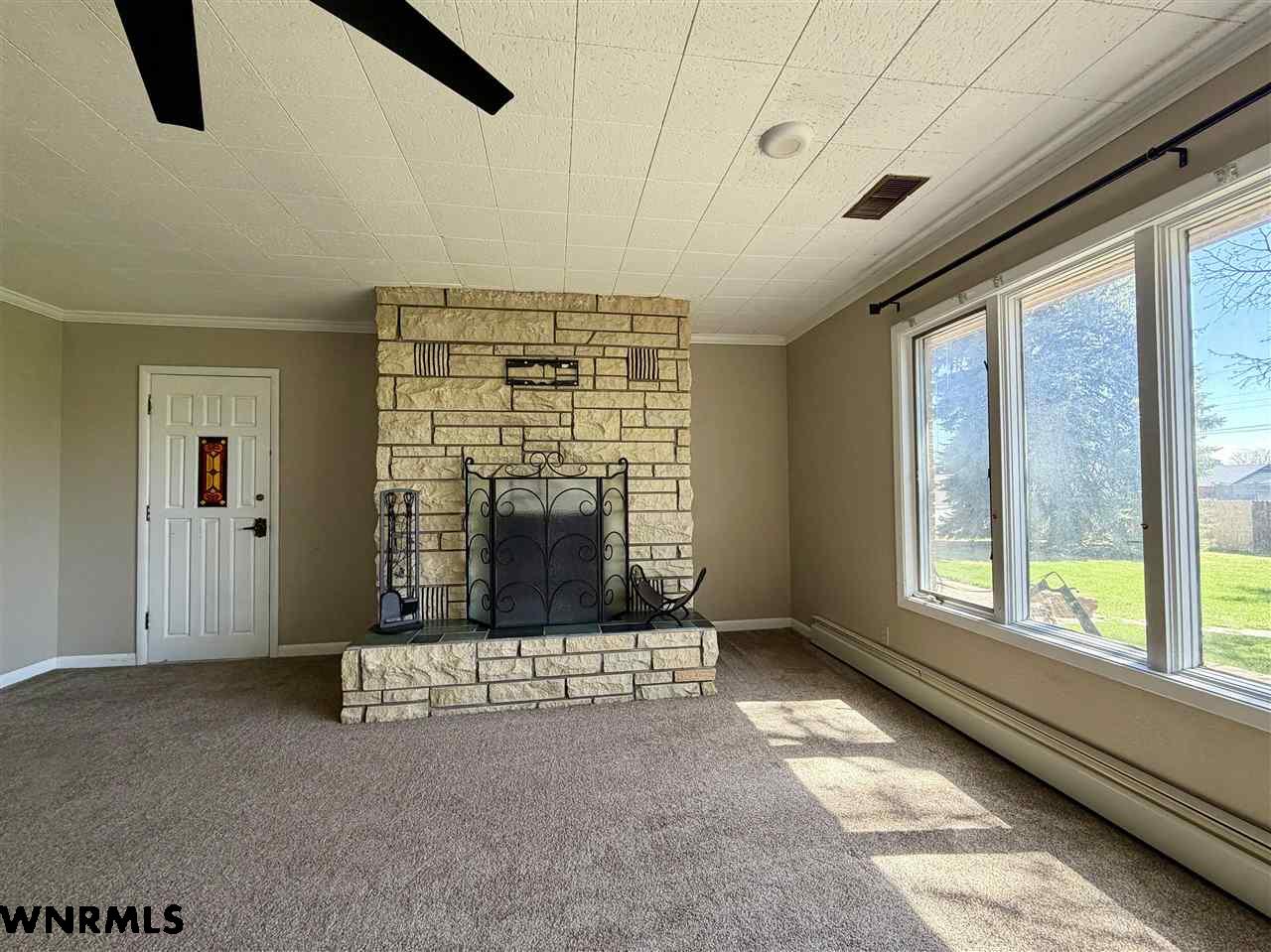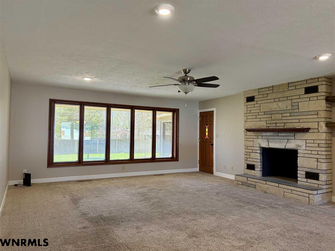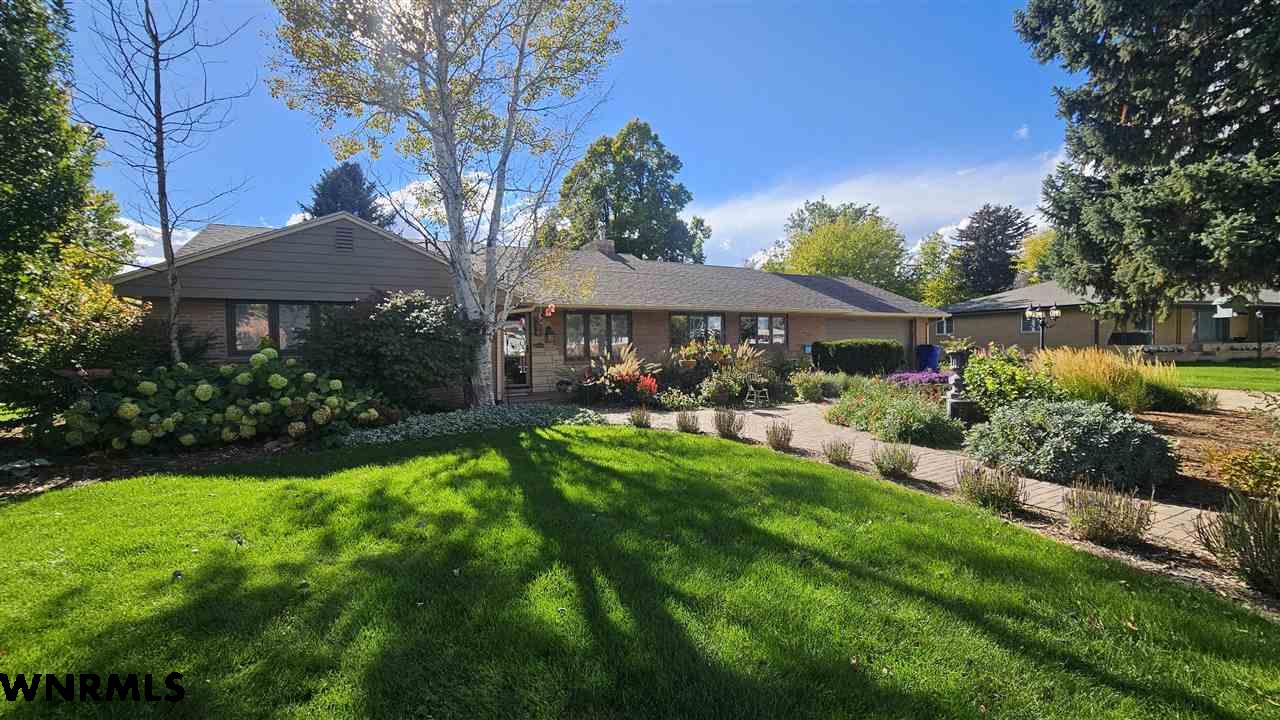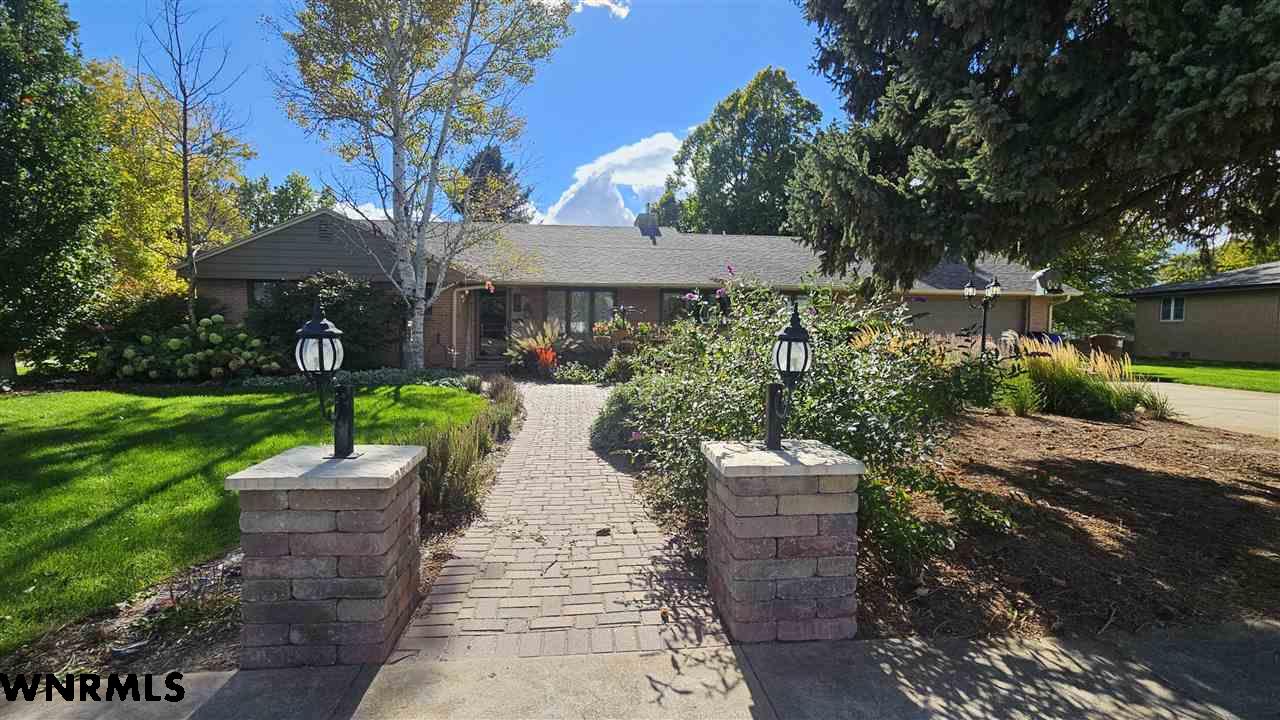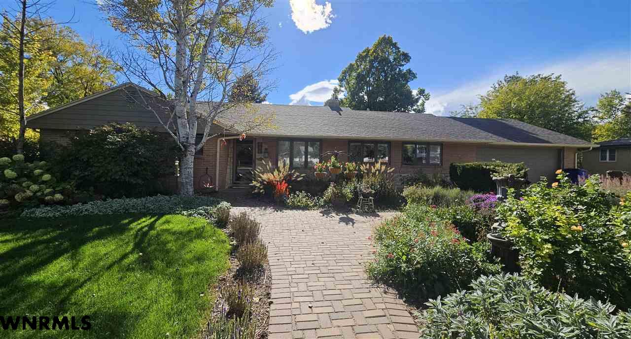 Beautiful one level, zero entry home nestled in a sought-after established neighborhood on large fully landscaped lot. Step inside to a spacious living room filled with natural light from the wall of windows that showcases the beautiful backyard and a focal point stone fireplace. Living room opens to a sunroom with floor to ceiling windows to enjoy the view of the backyard. Updated kitchen with windows that overlook the vibrant flower garden in front yard. Formal dining option or eat in kitchen dining options. Designed with privacy in mind, the home offers a split-bedroom layout, expansive primary suite is tucked away on one side of the home and features its own wall of windows, cozy fireplace, large walk-in closet, and private access to the sunroom. Three additional bedrooms and a full hall bath are located on the opposite side. Convenient laundry area and bathroom located between primary bedroom and kitchen. Huge fenced in back yard with stone fire pit area, perfect for those summer evenings. Underground sprinklers keep the yard low maintenance. Many beautiful perennial flowers grow in the front flower beds. 2 stall garage and long driveway provide plenty of off-street parking. There is a small basement accessed from garage that provides space for storage, a workshop, or storm shelter. *Some pictures are from summer 2025*