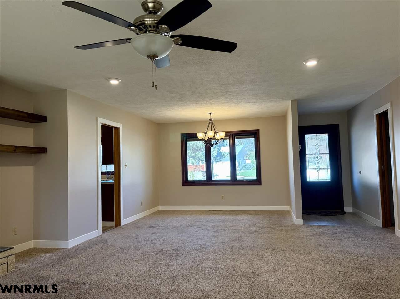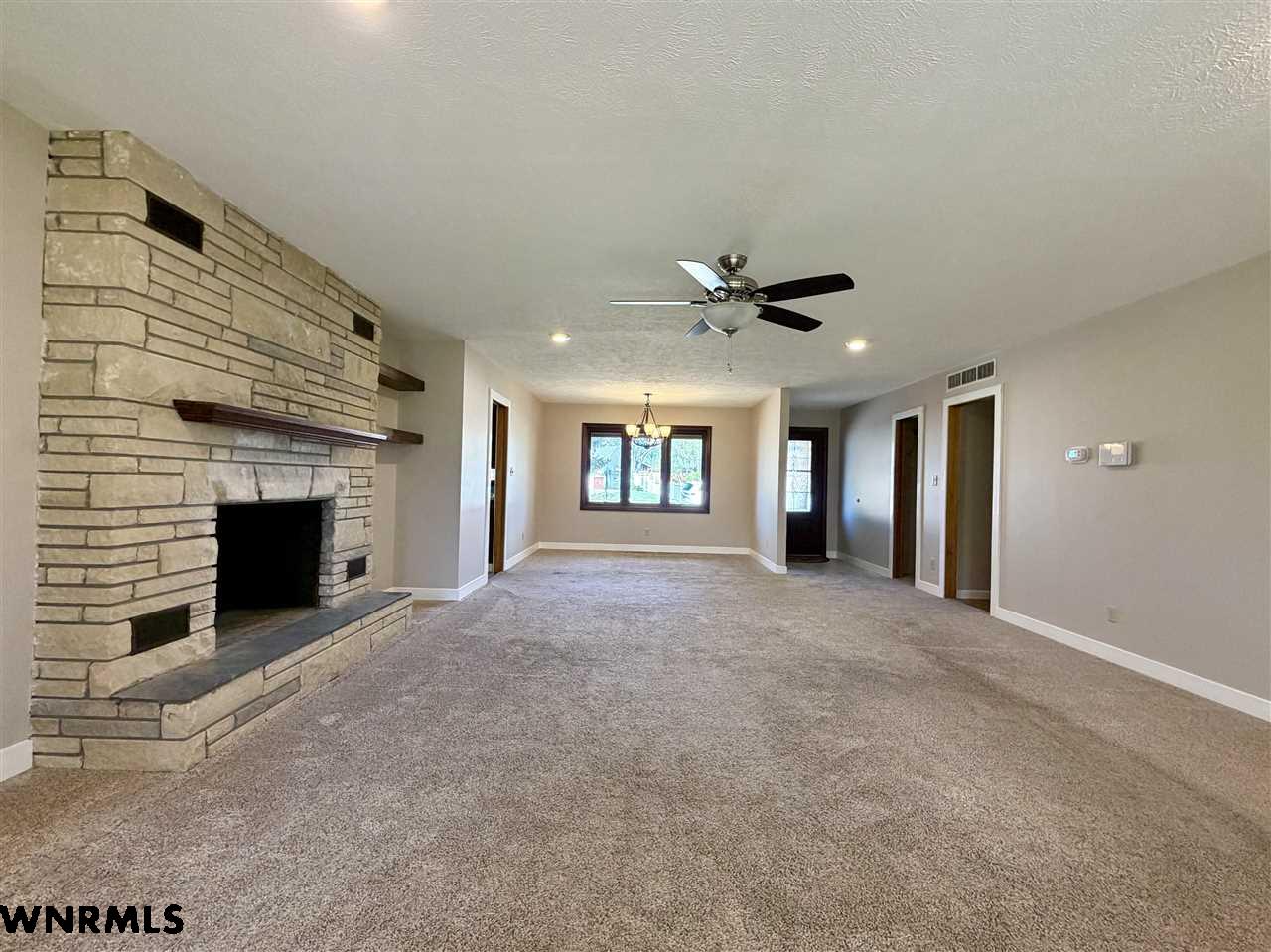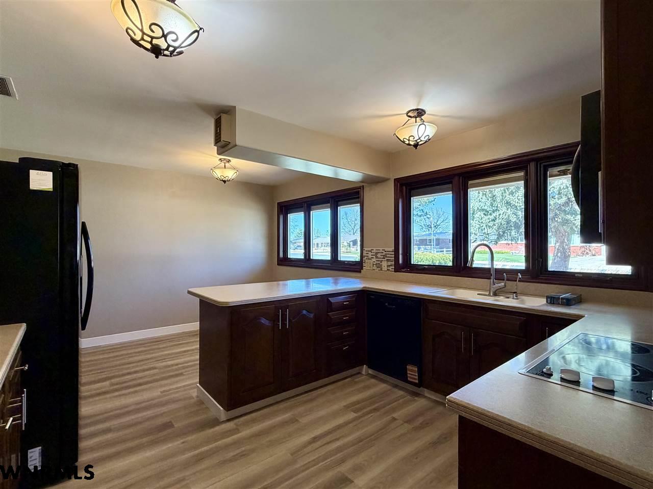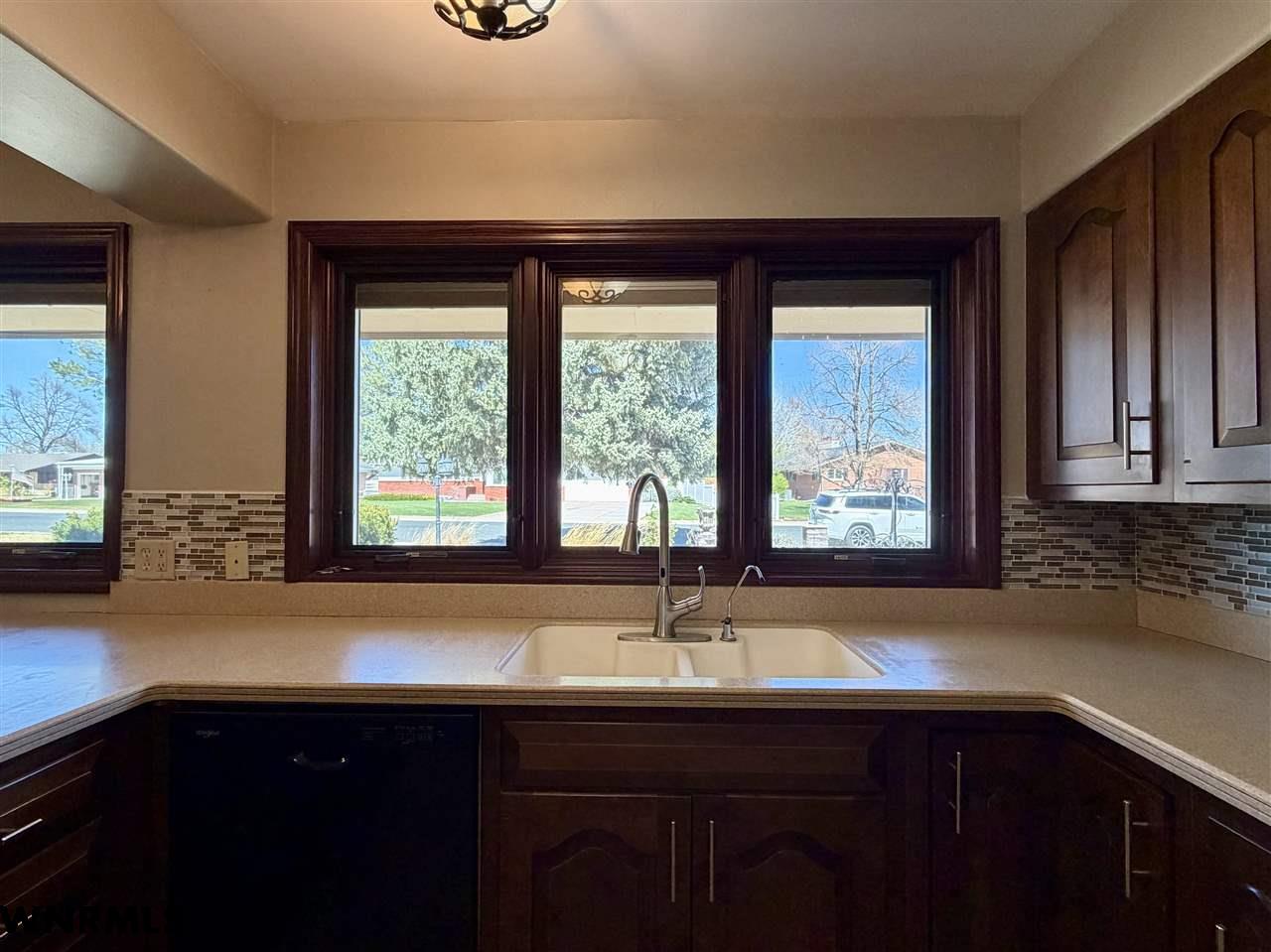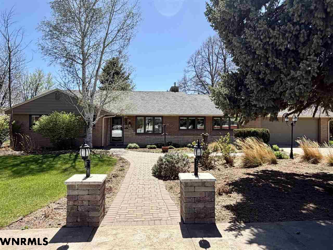 Beautiful one level, zero entry home nestled in a sought-after established neighborhood on large fully landscaped lot. Step inside to a spacious living room filled with natural light from the wall of windows that showcases the beautiful backyard and a focal point stone fireplace. Living room opens to a sunroom with floor to ceiling windows to enjoy the view of the backyard. Updated kitchen with windows that overlook the vibrant flower garden in front yard. Formal dining option or eat in kitchen dining options. Designed with privacy in mind, the home offers a split-bedroom layout, expansive primary suite is tucked away on one side of the home and features its own wall of windows, cozy fireplace, large walk-in closet, and private access to the sunroom. Three additional bedrooms and a full hall bath are located on the opposite side. Convenient laundry area and bathroom located between primary bedroom and kitchen. Huge fenced in back yard with stone fire pit area, perfect for those summer evenings. Underground sprinklers keep the yard low maintenance. Many beautiful perennial flowers grow in the front flower beds. 2 stall garage and long driveway provide plenty of off-street parking. There is a small basement accessed from garage that provides space for storage, a workshop, or storm shelter. *Some pictures are from summer 2025*