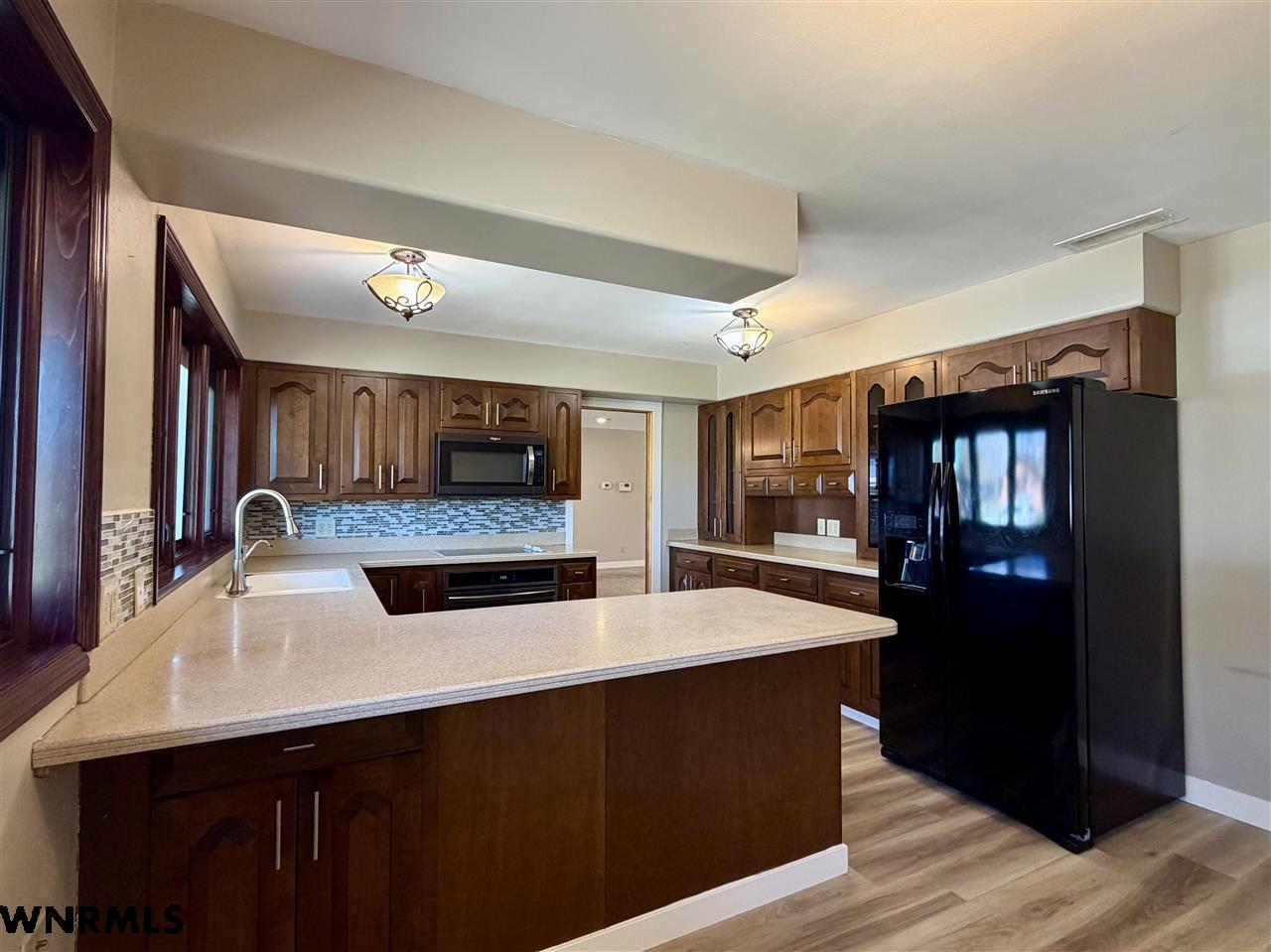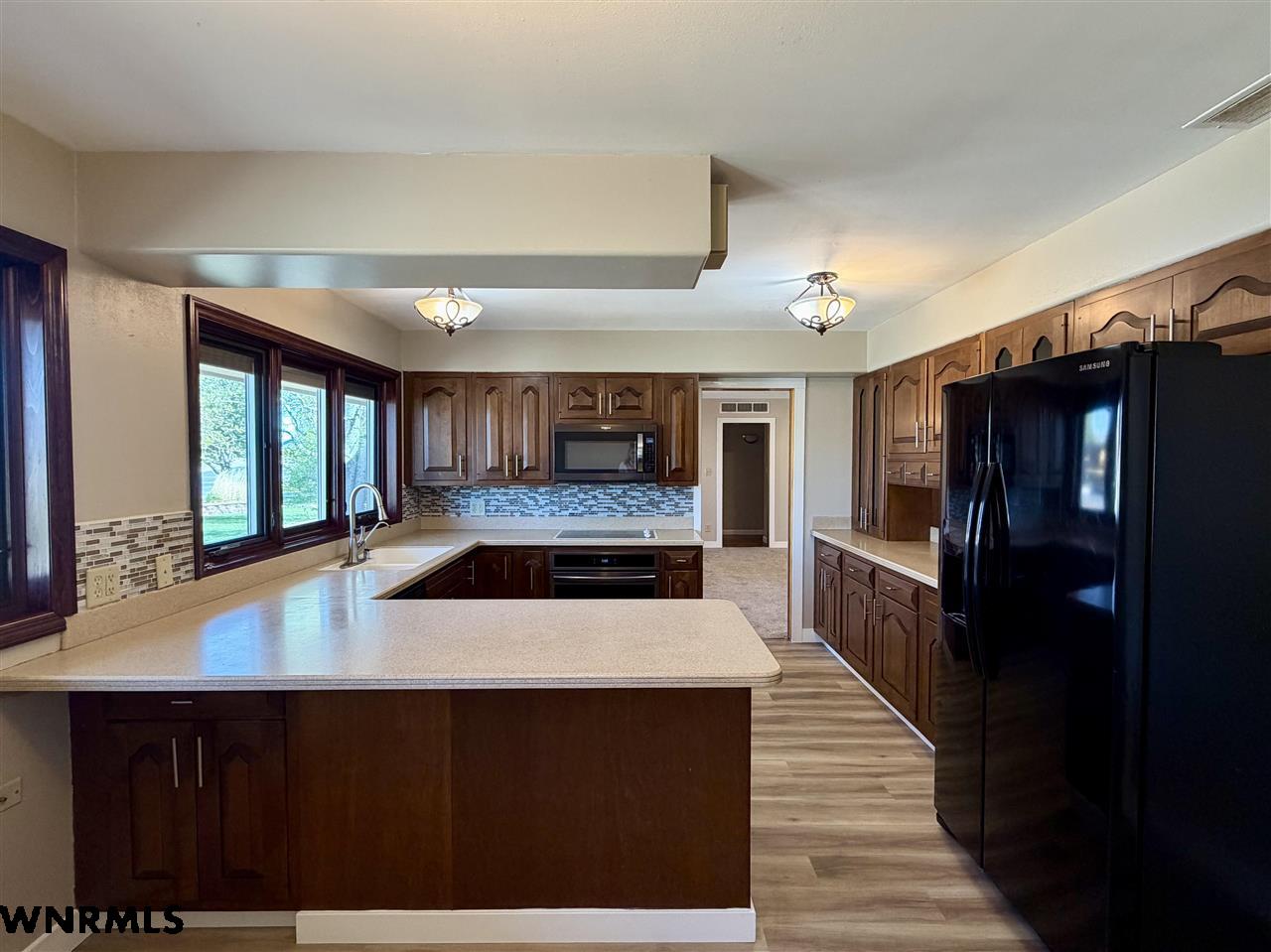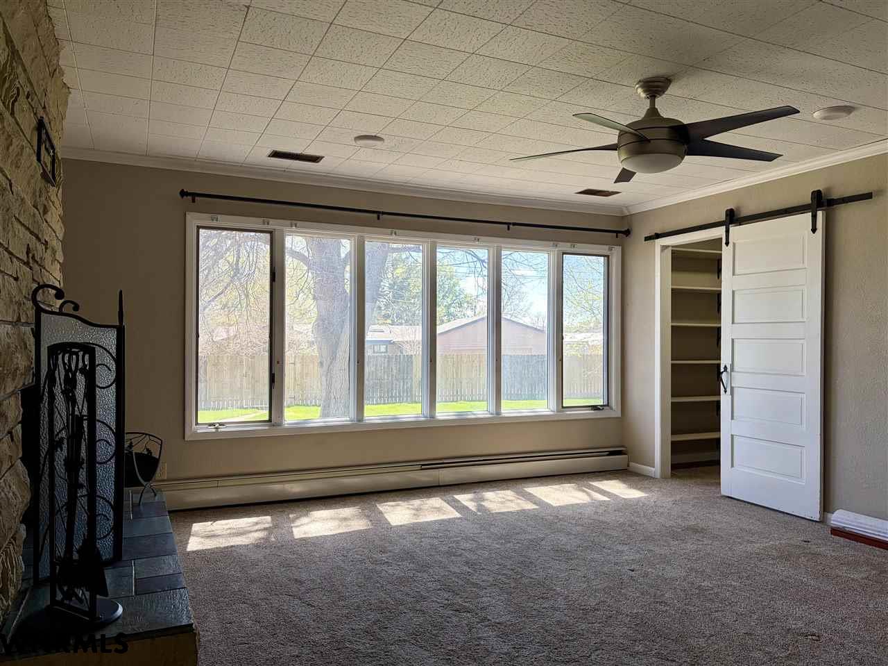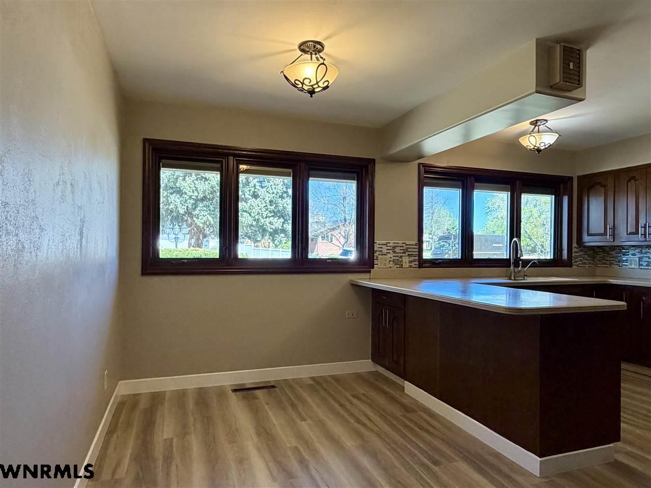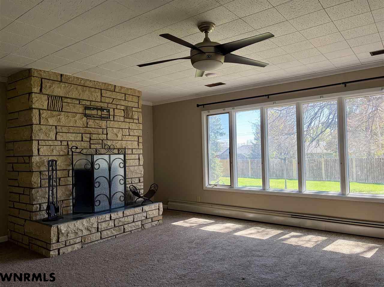 Beautiful one level, zero entry home nestled in a sought-after established neighborhood on large fully landscaped lot. Step inside to a spacious living room filled with natural light from the wall of windows that showcases the beautiful backyard and a focal point stone fireplace. Living room opens to a sunroom with floor to ceiling windows to enjoy the view of the backyard. Updated kitchen with windows that overlook the vibrant flower garden in front yard. Formal dining option or eat in kitchen dining options. Designed with privacy in mind, the home offers a split-bedroom layout, expansive primary suite is tucked away on one side of the home and features its own wall of windows, cozy fireplace, large walk-in closet, and private access to the sunroom. Three additional bedrooms and a full hall bath are located on the opposite side. Convenient laundry area and bathroom located between primary bedroom and kitchen. Huge fenced in back yard with stone fire pit area, perfect for those summer evenings. Underground sprinklers keep the yard low maintenance. Many beautiful perennial flowers grow in the front flower beds. 2 stall garage and long driveway provide plenty of off-street parking. There is a small basement accessed from garage that provides space for storage, a workshop, or storm shelter. *Some pictures are from summer 2025*